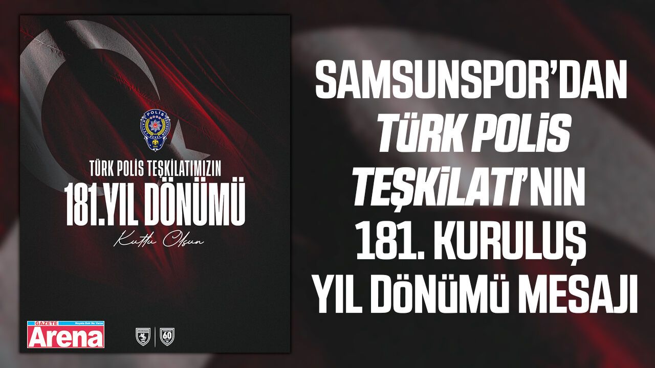 Samsunspor, Türk Polis Teşkilatı’nın 181. kuruluş yıl dönümü dolayısıyla bir kutlama mesajı yayımladı.