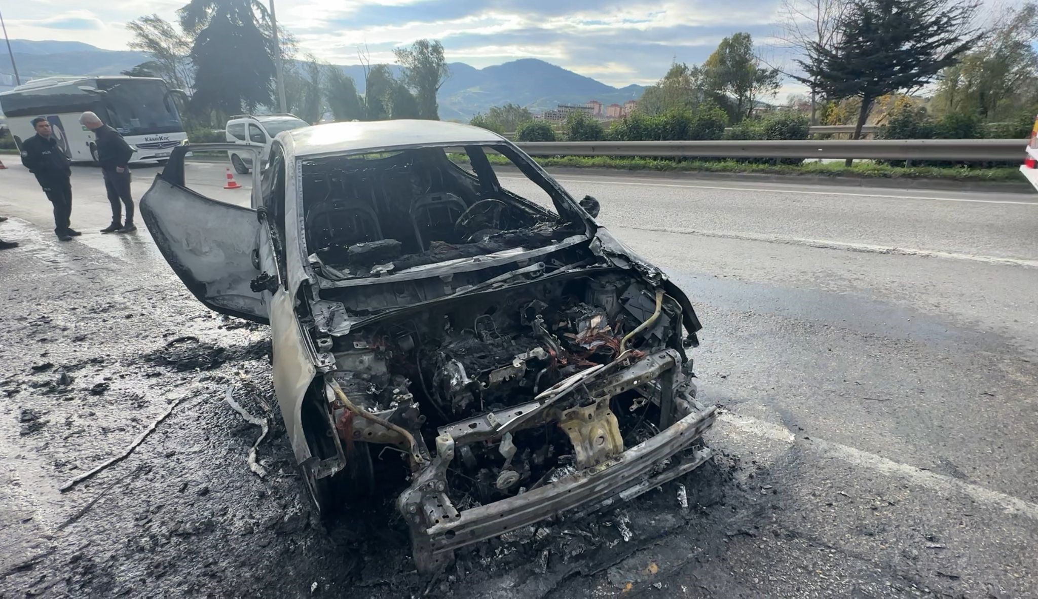 Motor bölümünde başlayan yangın kısa sürede büyüyerek tüm otomobili sardı. Araç adeta alev topuna dönerken Musaba hızla dışarı çıkarak olaydan yara almadan kurtuldu. Çevredekilerin ihbarı üzerine bölgeye itfaiye ekipleri sevk edildi.
