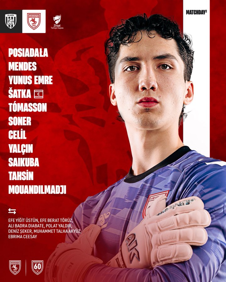 Ziraat Türkiye Kupası B Grubu 2. hafta mücadelesinde Samsunspor, bugün İzmir deplasmanında Aliağa Futbol A.Ş. ile karşı karşıya geliyor. Kırmızı‑beyazlı ekip, gruptaki ikinci maçında da sahadan galibiyetle ayrılmayı hedefliyor ve maç öncesi ilk 11’leri belli oldu.
