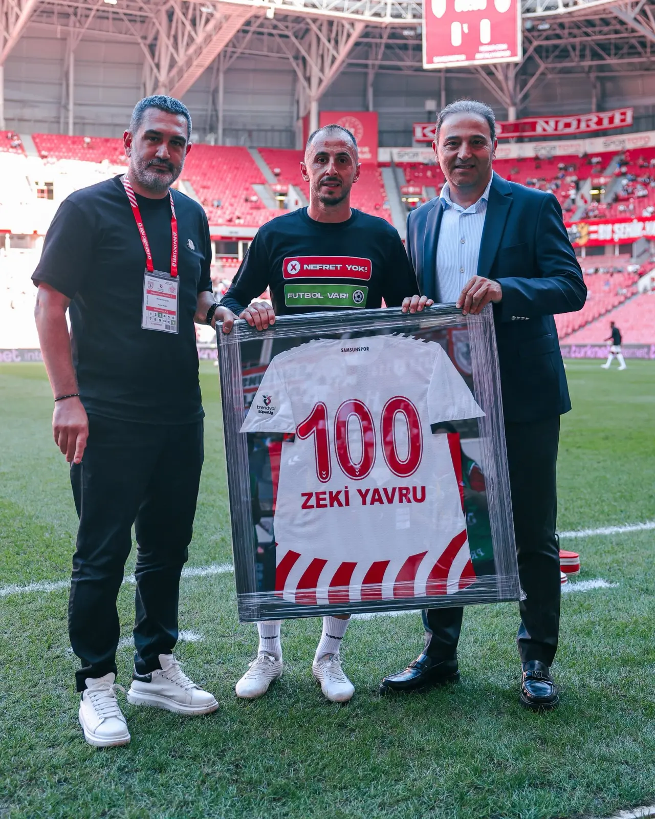 Kulüp tarafından düzenlenen törende, deneyimli futbolcuya üzerinde “100” yazılı özel forma ve plaket takdim edildi. Samsunspor yönetimi, Zeki Yavru’nun kulübe kattığı değer ve saha içindeki özverisi için teşekkür ederek, başarılarının devamını diledi.