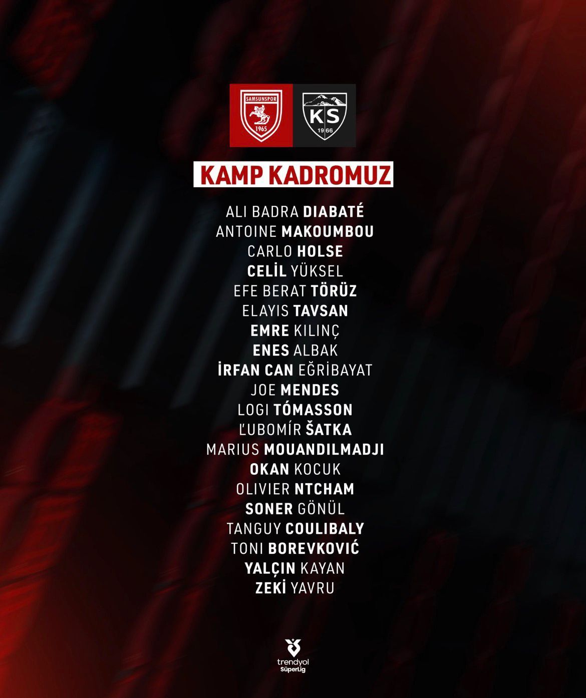 Samsunspor Zecorner Kayserispor ile oynanacak kritik karşılaşma öncesinde kamp kadrosu açıklandı. Teknik heyet, 20 kişilik listeyi belirlerken, kırmızı-beyazlı ekip kendi sahasından galibiyetle ayrılarak hanelerine +3 puanı yazdırmak istiyor.