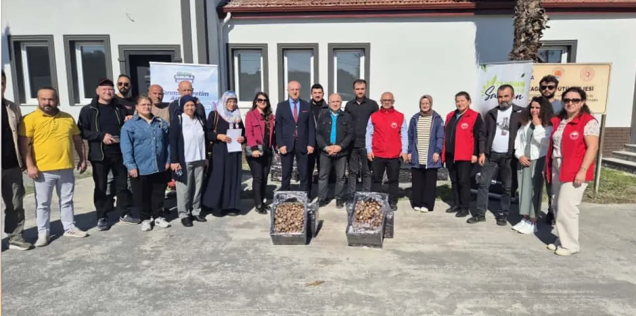 Samsun'un 19 Mayıs ilçesinde çiftçiye destek amaçlı nergis soğanı teslim edildi.