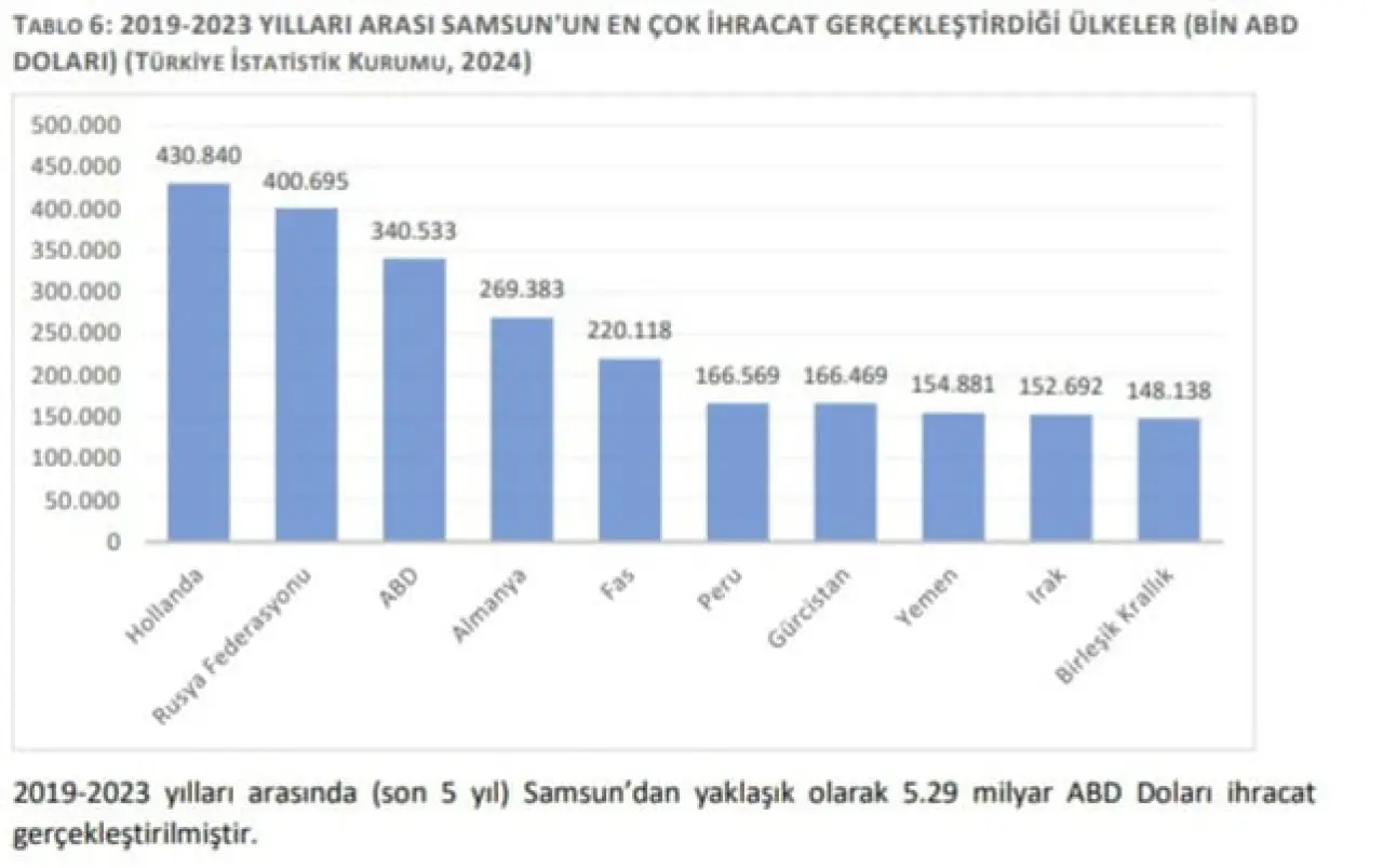 Tavlı, Samsun'da 2035 yılı için 5 milyar dolar hedefi koyulduğunu açıkladı. Samsun'un son dört yıllık ihracat rakamlarına bakıldığında; Türkiye İstatistik Kurumu (TÜİK) verilerine göre, Samsun'dan 2024 yılında 1,6 milyar dolarlık ihracat yapıldı. 2023 yılında 1,25 milyar dolar, 2022'de 1,3 milyar dolar, 2021 yılında ise 1,2 milyar dolar ihracat gerçekleşti. Samsun'un 2021-2024 ihracat rakamı ortalaması yıllık 1,33 milyar dolar.
