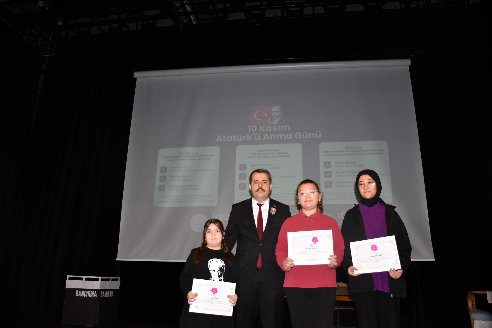 Vezirköprü Cumhuriyet Meydanı’nda gerçekleştirilen törende Atatürk Anıtı’na çelenkler bırakıldı. Kaymakam, Garnizon Komutanı ve Belediye Başkanı başta olmak üzere protokol üyeleri, siyasi parti temsilcileri ve vatandaşlar katıldı. Saygı duruşu ve İstiklal Marşı’nın ardından Vezirköprü Belediyesi Kültür Merkezi’nde düzenlenen programda tiyatro, oratoryo, müzik ve şiir dinletileri sunuldu. Resim, şiir ve kompozisyon yarışmalarında dereceye giren öğrencilere ödülleri takdim edildi.