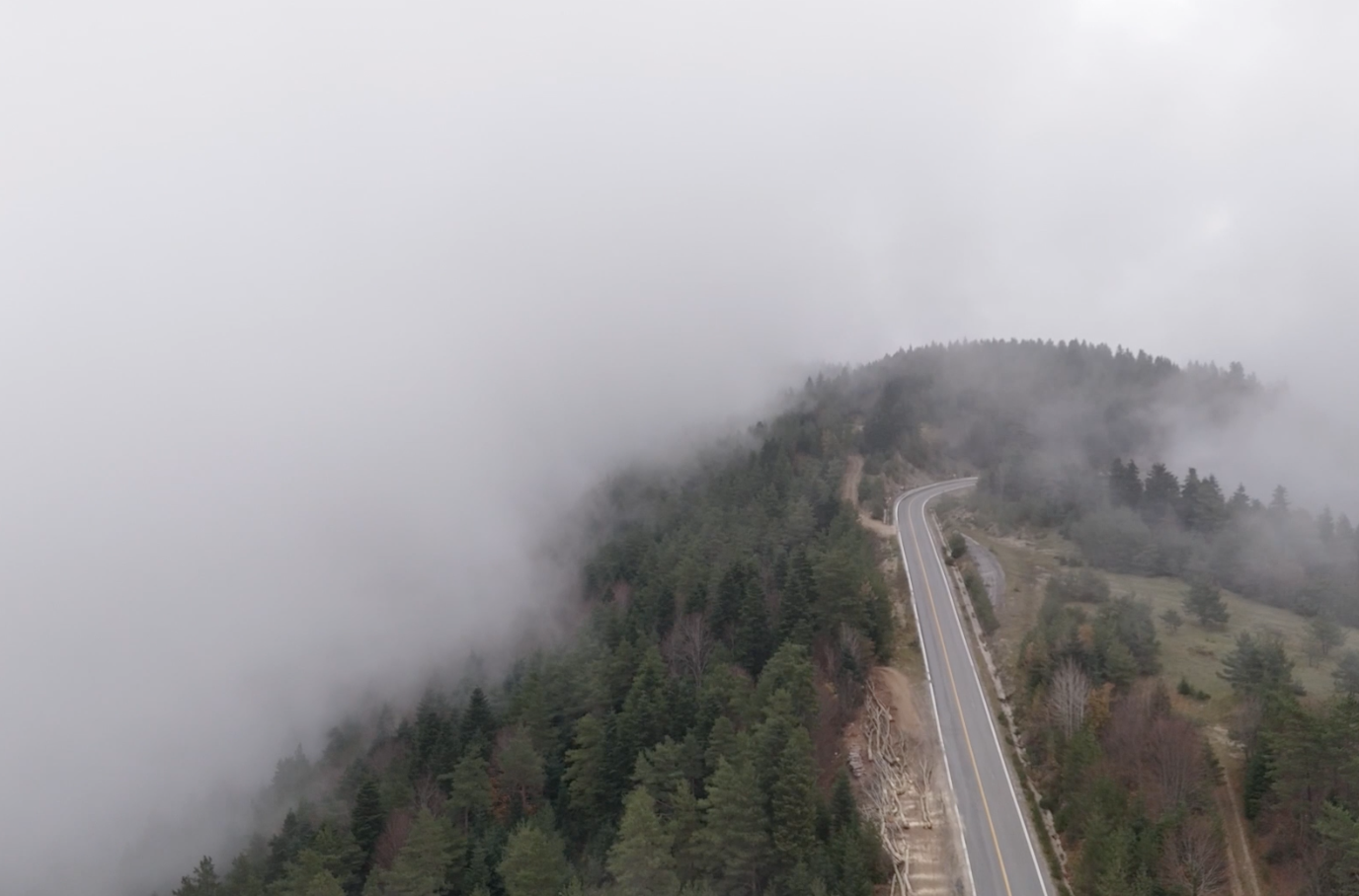 Bölgede sabah erken saatlerde başlayan sis, görüş mesafesini yer yer düşürdü. Gündüz vakti dağın zirvesinde oluşan sis tabakasıyla birleşen manzaralar, drone ile havadan görüntülendiğinde ortaya adeta bir “sis denizi” çıktı.