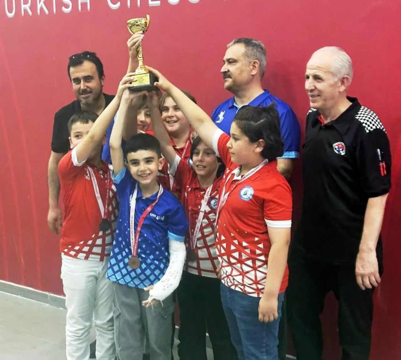 Turnuvada başarılı performans sergileyen öğrenciler, büyük mutluluk yaşadı. Şehit Selman Özay İlkokulu öğrencileri, kazandıkları kupaları öğretmenleri ve antrenörleri Andan Apaydın eşliğinde kaldırarak bu özel anı birlikte kutladı.