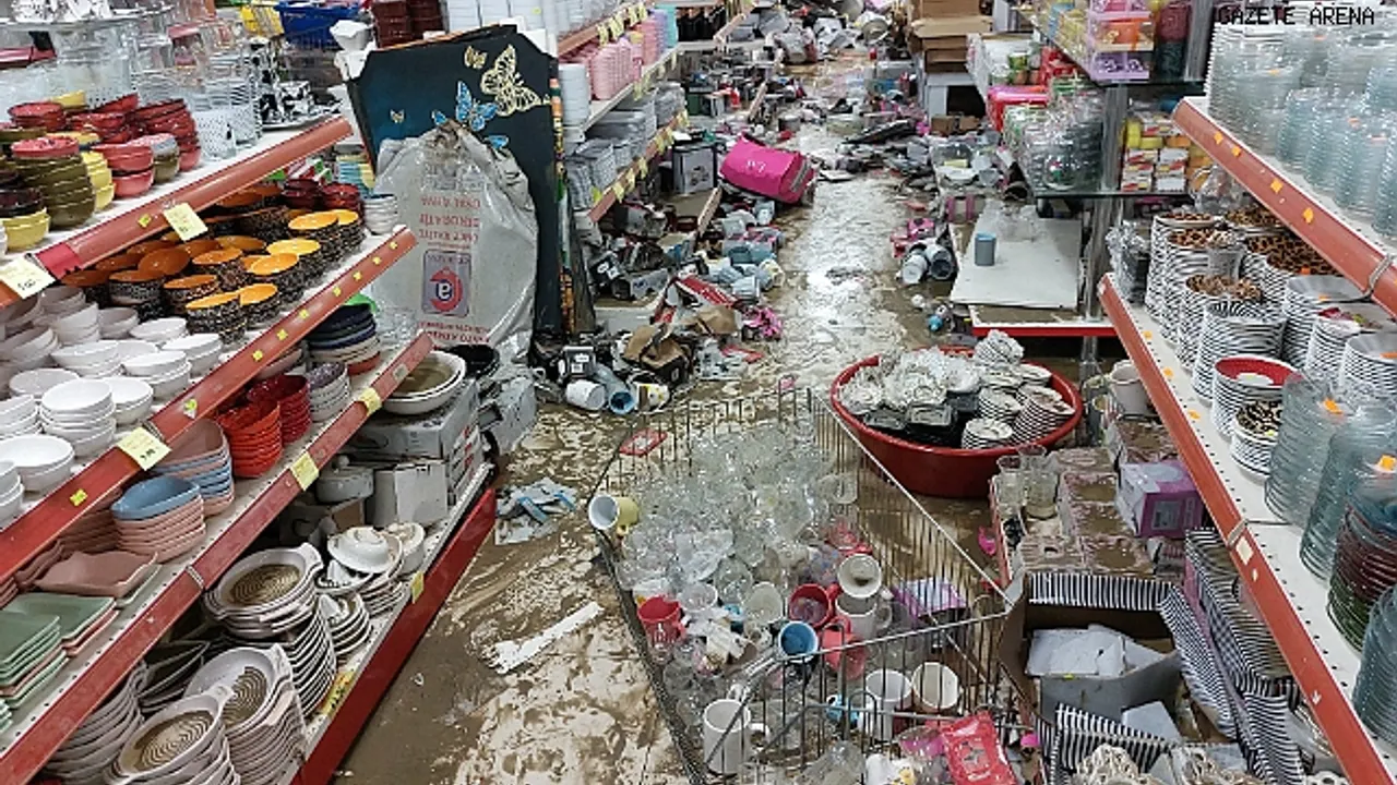 İşyeri çalışanları ve olayı üzüntü içinde anlattı. AVM Müdürü Ferit Katar ise iş yerini basan sel suyunun raflardaki ürünlere büyük zarar verdiğini, zararlarının yaklaşık 5 milyon lira olduğunu söyledi.