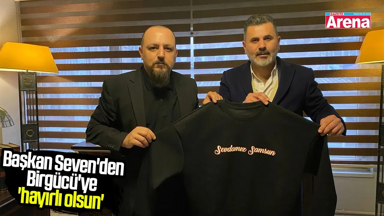 Sevdamız Samsun Genel Başkanı Nuri Seven, Gazete Arena Genel Yayın Yönetmenliği görevine başlayan Tolga Birgücü'yü makamında ziyaret ederek yeni görevinde başarılar diledi. Ziyaret sırasında Başkan Seven, Birgücü’ye Sevdamız Samsun’un 8. yılına özel olarak hazırlanan anlamlı bir sweat hediye etti.