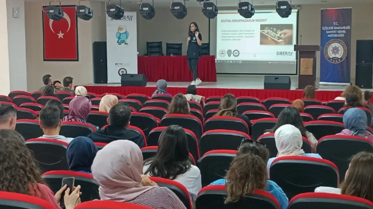 Siber Suçlarla Mücadele Şube Müdürlüğünde görevli polis memurları tarafından "Siberay Güvenlik Semineri" kapsamında, güvenli internet kullanımı, çevrimiçi yasadışı bahis, dijital okuryazarlık, teknoloji bağımlılığı ve siber zorbalık hakkında bilgilendirmeler yapıldı. Sunumlar yapılıp, siber suç tanımı, siber suçlarla mücadele yöntemleri gibi başlıklarda rehber öğretmenlere açıklayıcı bilgiler aktarıldı.