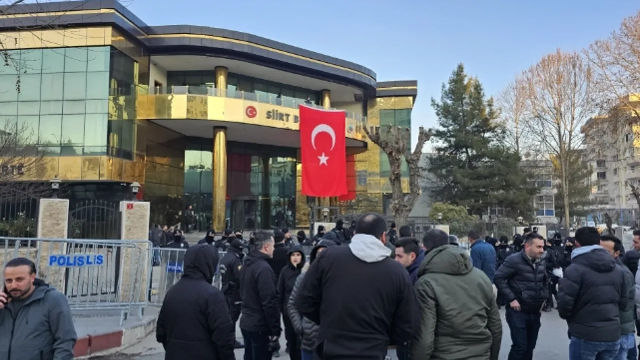 İçişleri Bakanlığı tarafından Siirt Belediyesine Vali Kemal Kızılkaya'nın kayyum olarak görevlendirilmesinin ardından binaya Türk bayrağı asıldı.