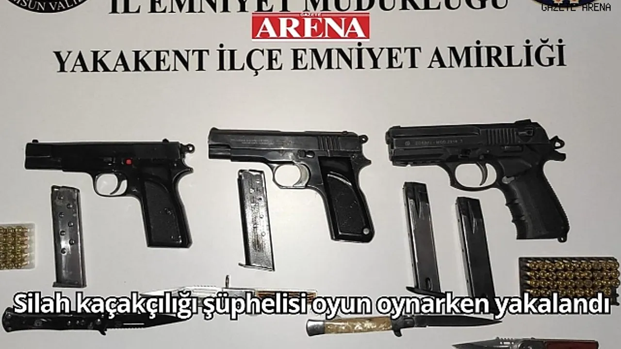 İl Emniyet Müdürlüğü Yakakent İlçe Emniyet Amirliği ekipleri, Yakakent ilçesinde silah kaçakçılığı yaptığı gerekçesiyle şüpheli N.Ş.'yi bir kahvehanede oyun oynadığı esnada yakaladı. Şahsın yapılan üst aramasında bir adet bıçak, ikametinde ise çeşitli bölmelere zulalanmış vaziyette 2 adet ruhsatsız tabanca, 4 adet sustalı bıçak, 101 adet tabanca fişeği ve 48 adet kurusıkı tabanca fişeği ele geçirildi.