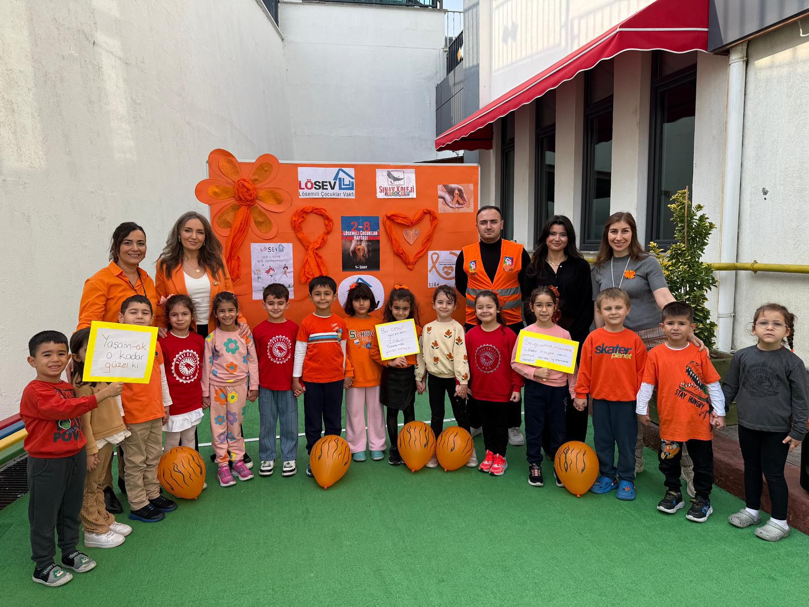 Öğrenciler, löseminin sembol rengi olan turuncu kurdeleleri yakalarına takarak farkındalıklarını ifade etti. Gün boyunca turuncu temalı kıyafetleriyle etkinlik alanını renklendiren öğrenciler, ip atlama ve halat çekme gibi oyunlarla dayanışma örneği sergiledi. Etkinlik sonunda öğrenciler, bedenleriyle “LÖSEV” yazısı oluşturarak güçlü bir farkındalık mesajı verdi. Sınav Koleji öğrencilerinin bu özel günde sergiledikleri duyarlılık ve coşku, “Umut varsa, iyileşme de vardır” mesajını güçlü bir şekilde yansıtarak lösemili çocuklara moral kaynağı oldu.