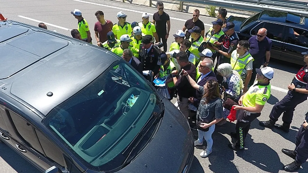Kurban Bayramı döneminde yoğun ziyaretçi alan Sinop'un farklı noktalarında, Sinop İl Emniyet Müdürlüğü Trafik Şube Müdürlüğü'ne bağlı ekipler, vatandaşların can güvenliği için denetimlerini sıklaştırdı. “Gözünü yoldan ayırma sevdiklerinin gözünü yolda bırakma” mottosu kapsamında Sinop Valisi Erol Karaömeroğlu, Şişecam mevkiinde Sinop’a giriş yapan araç sürücülerine uyarılarda bulunularak broşür dağıtım gerçekleştirdi. Araçta bulunan çocuklara ise bayram hediyesi olarak çeşitli oyuncaklar verdi.