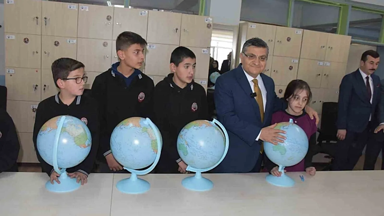 Sinop Valisi Dr. Mustafa Özarslan, Sinop Seyit Bilal İmam Hatip Ortaokulu öğrencilerine 'model küre' dağıttı.