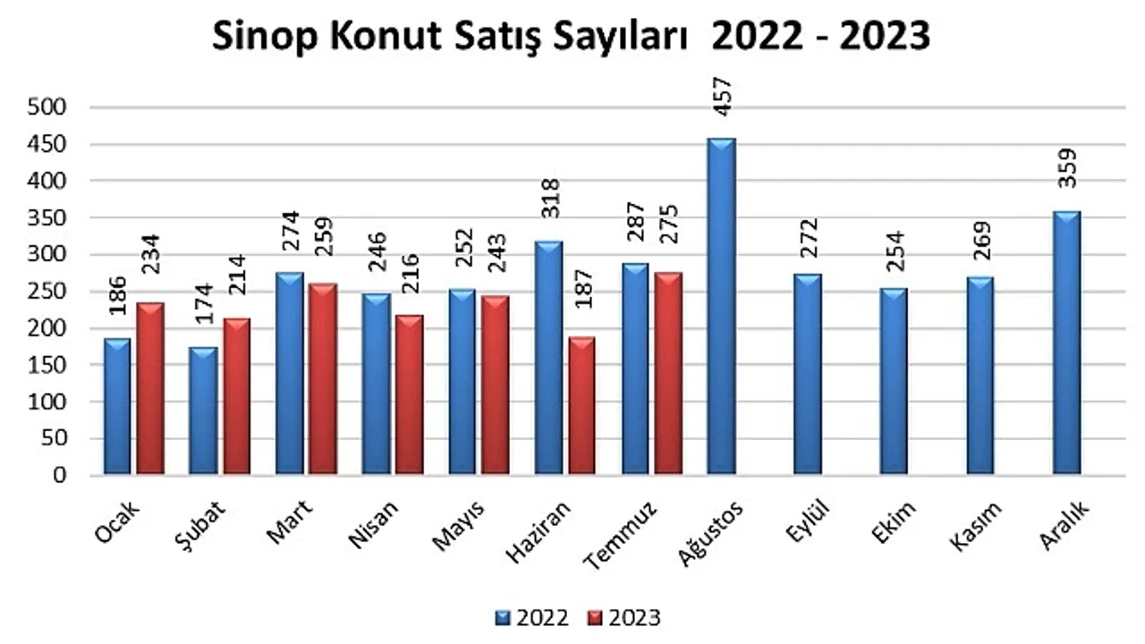 Türkiye İstatistik Kurumu Başkanlığı (TÜİK) 2023 yılı Temmuz ayı Konut Satış İstatistiklerini açıkladı. Buna göre Türkiye genelinde Temmuz ayında 109 bin 548 konut satıldı. Temmuz ayında Sinop genelinde konut satışları 275 adet olarak açıklandı. Konut satışlarının bir önceki yılın aynı ayına göre yüzde 4,2 azaldığı görüldü. Temmuz ayında Sinop, konut satış sayısı bakımından 66. il oldu. Sinop Merkez ilçesinde Temmuz ayında 76 adet konut satıldı. Sinop Merkez ilçesinde satılan konut sayısının Sinop genelindeki payı yüzde 27,6 oldu.