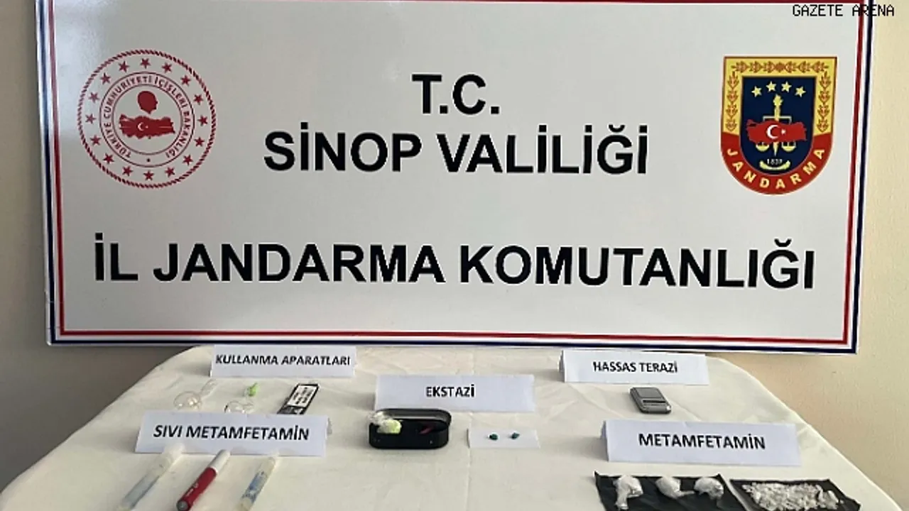 Sinop İl Jandarma Komutanlığı ekipleri Erfelek - Sinop karayolu üzerindeki bir otomobilde uyuşturucu madde imal ve ticareti suçu kapsamında adli arama gerçekleştirdi. Aramada 45 gr. sıvı metamfetamin, 12 gr. metamfetamin, 6 gr. toz ekstazi uyuşturucu madde, 2 adet ekstazi hap, 1 adet hassas terazi ve 2 adet uyuşturucu kullanma aparatı ele geçirildi. Olayla ilgili 2 şüpheli gözaltına alındı.