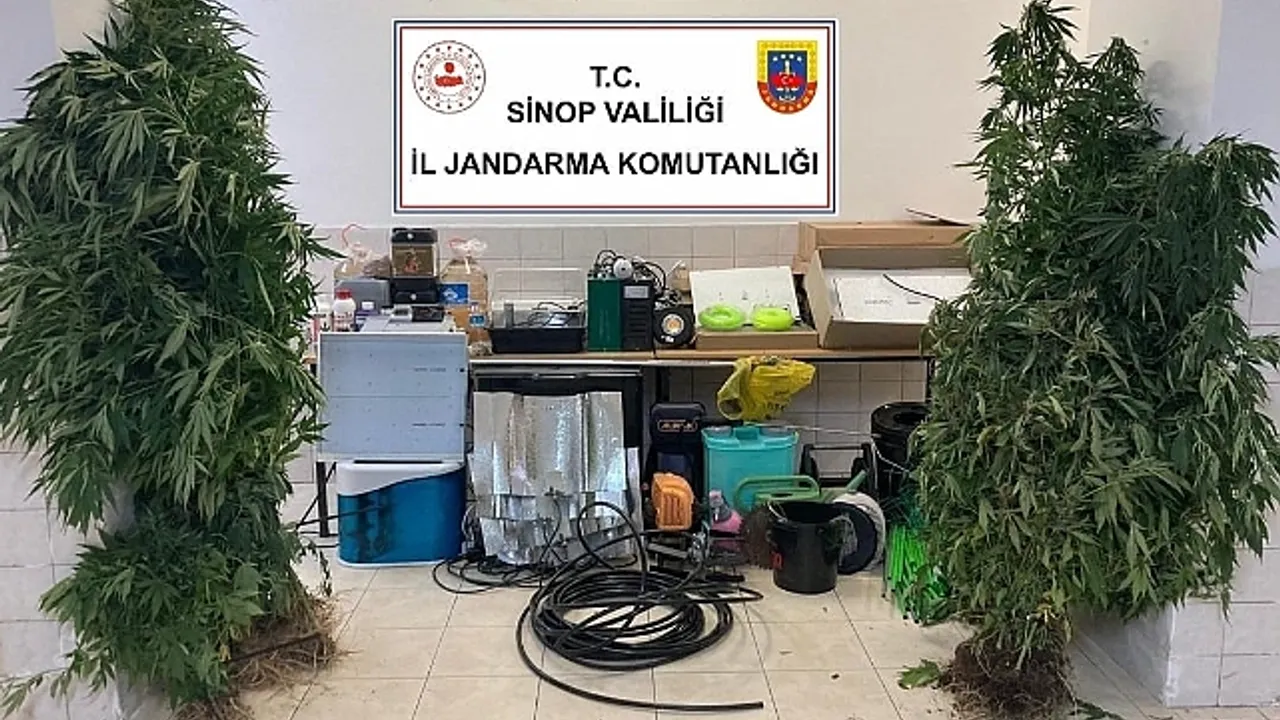 Sinop İl Jandarma Komutanlığı ekiplerince Saraydüzü ilçesinde uyuşturucu yetiştiren ve satan şahıslara yönelik yapılan operasyonda 52 kök kenevir bitkisi, 2 adet av tüfeği, 1 adet kuru sıkı tabanca, 96 adet av tüfeği fişeği, 6 adet kuru sıkı tabanca fişeği, 1 adet mini elektrikli sera, muhtelif miktarda damlama su hortumu, 9 adet led (kenevir yetiştirmek için) ve 1 adet sırt pompası ele geçirilerek adli işlemlere başlanıldı.