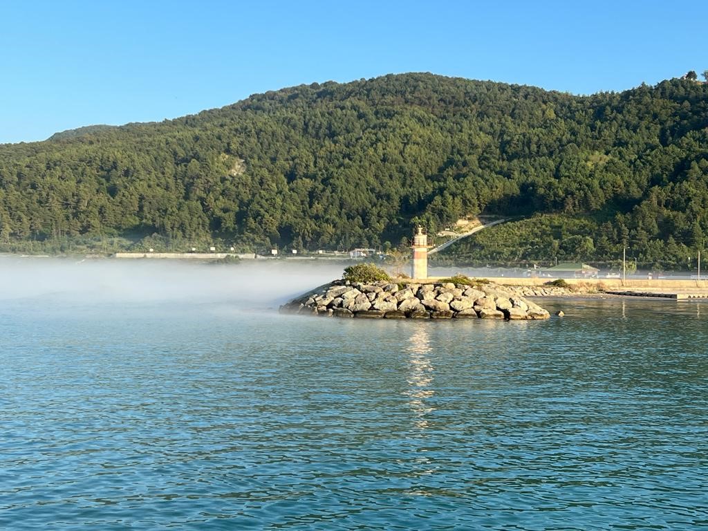 Bölgede deniz suyu sıcaklığının 15 derece birden düşmesi sonucu deniz buharlaşarak ilginç görüntüler oluştu. İlginç doğa olayı cep telefonu kameraları ile görüntülendi.