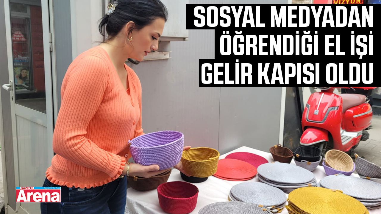 Samsun’un İlkadım ilçesinde yaşayan 33 yaşındaki Gizem Okul, sosyal medyadan gördüğü el işi videolarıyla kendi işini kurdu. Evde videolar izleyerek öğrenmeye başlayan Okul, 3 yıl önce Rusça yayımlanan bir videoda kalın iplerden tabak altlığı, çanta ve sepet yapıldığını gördü.