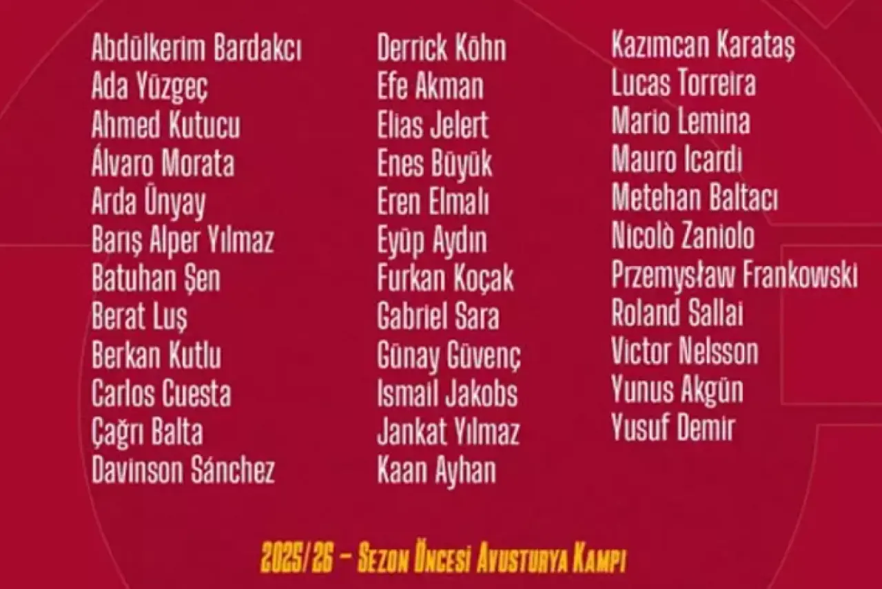 Galatasaray'ın resmi internet sitesinden ve sosyal medya hesaplarından yapılan açıklamaya göre, kamp kadrosuna şu isimler dahil edildi: