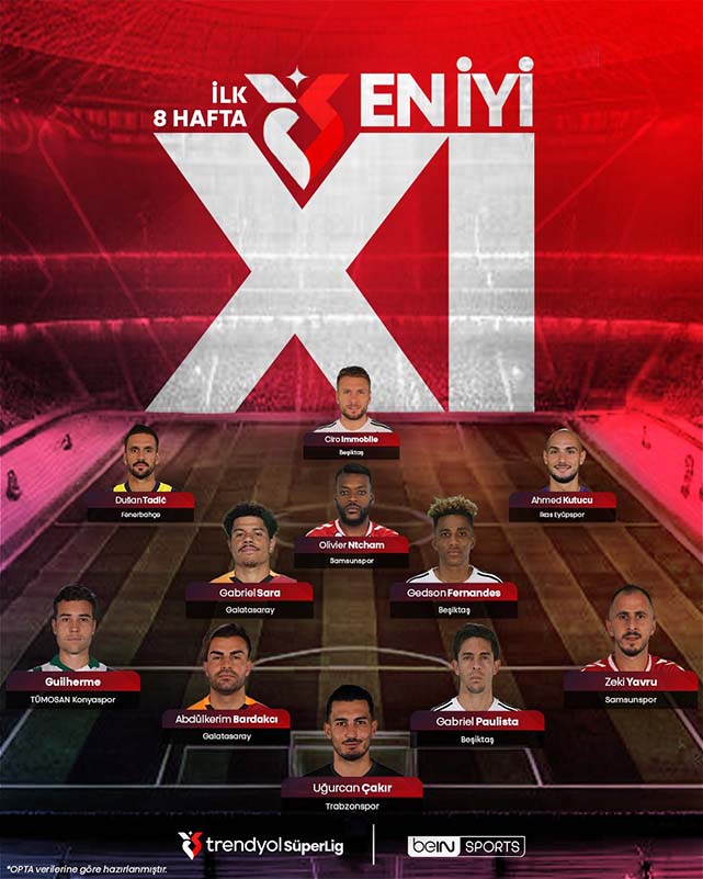 Opta verilerine göre hazırlanan ilk 11'de Samsunspor'dan da Zeki Yavru ve Olivier Ntcham yer alıyor