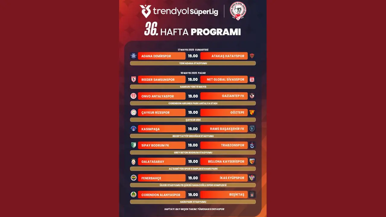 Süper Lig'de 36. hafta programı şöyle: