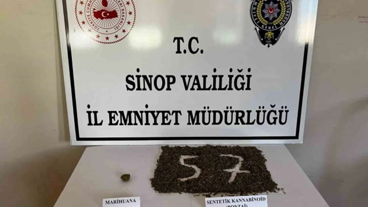 Sinop'un Durağan ilçesinde yapılan şok uygulamada şüpheli bir şahsın üst aramasında 55.13 gram bonzai ile 1.32 gram marihuana ele geçirildi.