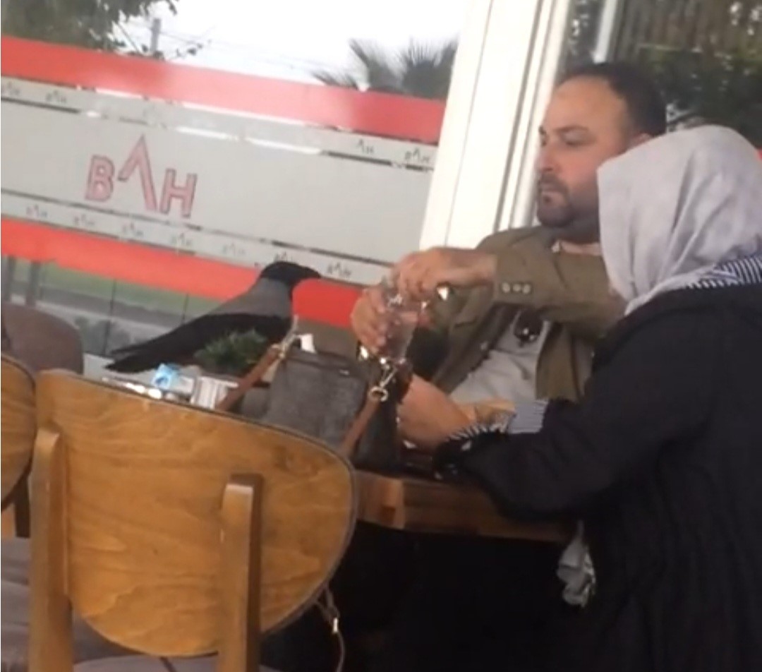 Samsun'un İlkadım ilçesi İstasyon Mahallesi'nde bulunan bir özel hastanenin kafeteryasının bahçe kısmında oturan vatandaşın masasına konan karga masada bulunan su şişesine gagası ile vurup adeta gösterircesine su istedi. Masada oturan şahıs bir kaba su koyup karganın içmesini sağladı. Suyunu içen karga daha sonra masadan ayrıldı. Karga ile vatandaş arasındaki diyalog cep telefonu ile görüntülendi.