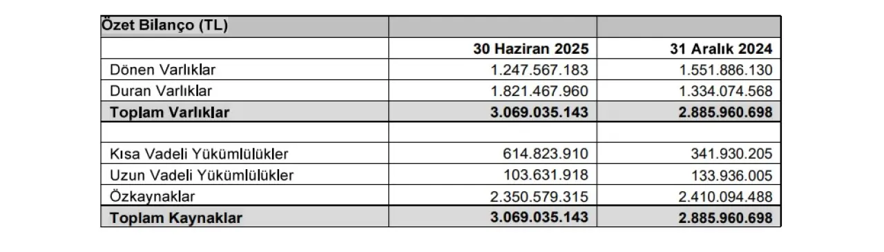 Payları Borsa İstanbul’da TARKM kodu ile işlem görmekte olan Tarkim Bitki Koruma Sanayi ve Ticaret A.Ş., 2025 yılının 2. çeyrek finansal tablolarını kamuoyu ve yatırımcıları ile paylaştı. Böylece, firmanın yılın ilk yarısına dair rakamları da netleşmiş oldu. İşte Tarkim Bitki Koruma Sanayi ve Ticaret A.Ş bilanço detayları…