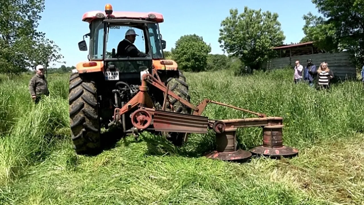 Konuşmaların ardından ekili olan İlkadım çeşidi İtalyan çimi yem bitkisi traktörle hasat edildi.