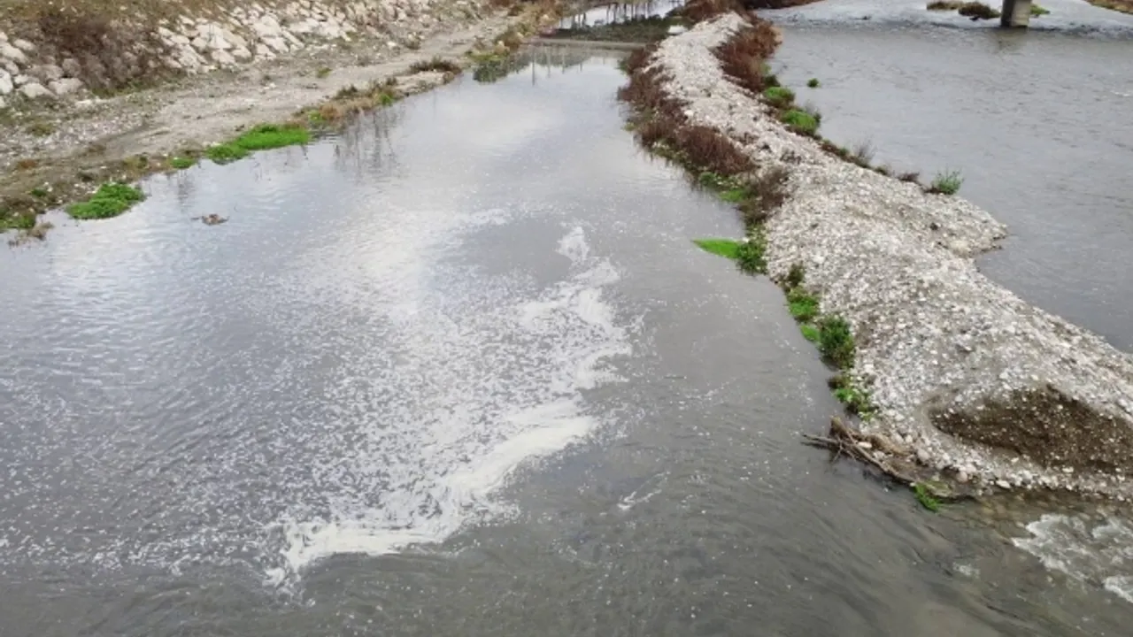 Taşova'da Yeşilırmak kirlilikten köpürdü