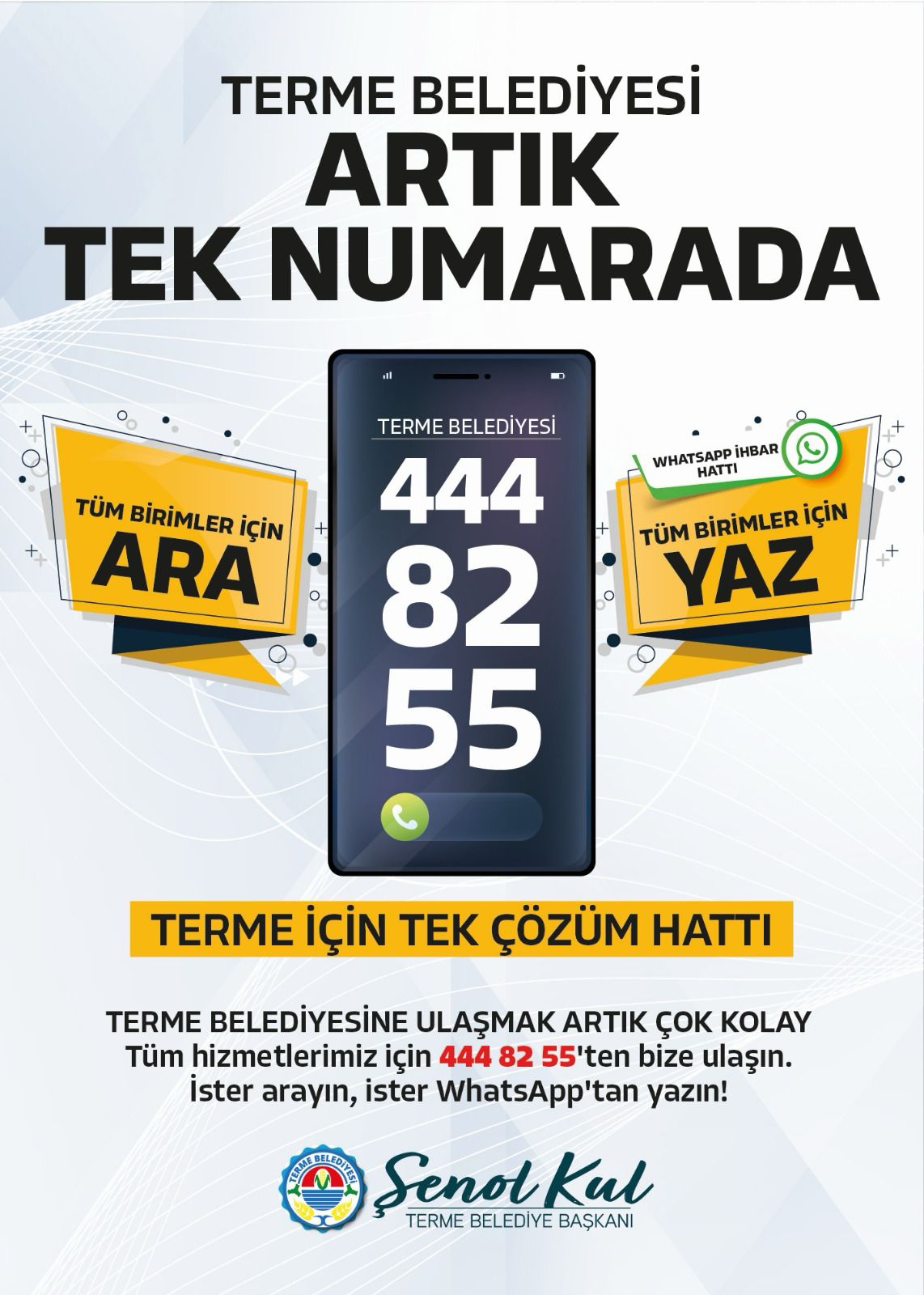 Terme Belediyesi, vatandaşların talep, öneri ve şikayetlerine daha hızlı yanıt verebilmek için yeni bir çağrı merkezi hattı oluşturdu. “444 82 55” numarasıyla hizmete başlayan bu hat sayesinde, tüm belediye birimlerine tek merkezden ulaşmak mümkün olacak. Ayrıca, hattın WhatsApp İhbar Hattı özelliği de aktif olarak kullanılacak.