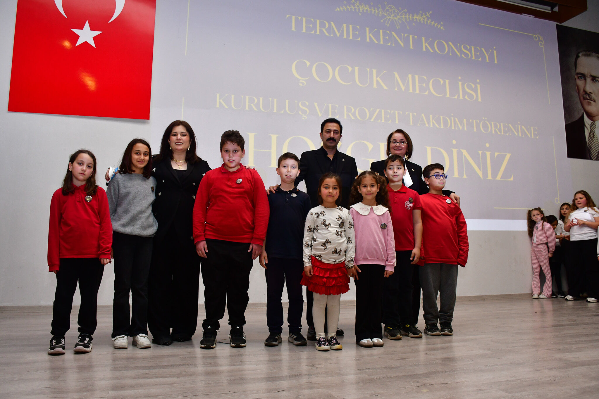 Program kapsamında, 50 öğrenciye Çocuk Meclisi üyelik rozetleri takdim edilerek resmi görev süreci başlatıldı. Törene, Terme Belediye Başkan Yardımcısı Sezai Uzun, Terme Kent Konseyi Başkanı Dilek Aydın, konsey üyeleri, siyasi parti temsilcileri, sivil toplum kuruluşu temsilcileri, veliler ile çok sayıda öğrenci katılım sağladı.