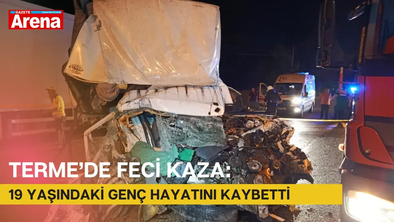 Edinilen bilgiye göre, Mustafa Akman (45) idaresindeki 55 439 plakalı kamyonet, direksiyon hakimiyetinin kaybedilmesi sonucu yolun dışında park halinde bulunan 33 * 49 çekici ve 33 *** 18 plakalı yarı römork tıra arkadan çarptı. Kazada kamyonette bulunan Abdussamed Zengin (19) olay yerinde hayatını kaybederken, kamyonet sürücüsü Mustafa Akman da yaralandı. Yaralı sürücü ambulansla Terme Devlet Hastanesine kaldırılarak tedavi altına alındı.