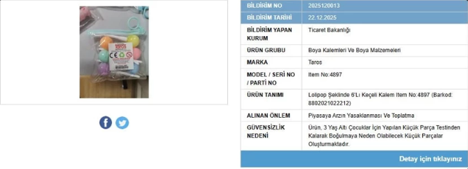Ticaret Bakanlığı yetkilileri, ürün güvenliği konusunda farkındalığı artırmak ve benzer risklerin önüne geçmek amacıyla Güvensiz Ürün Bilgi Sistemi’ni düzenli olarak güncellediklerini belirtti.