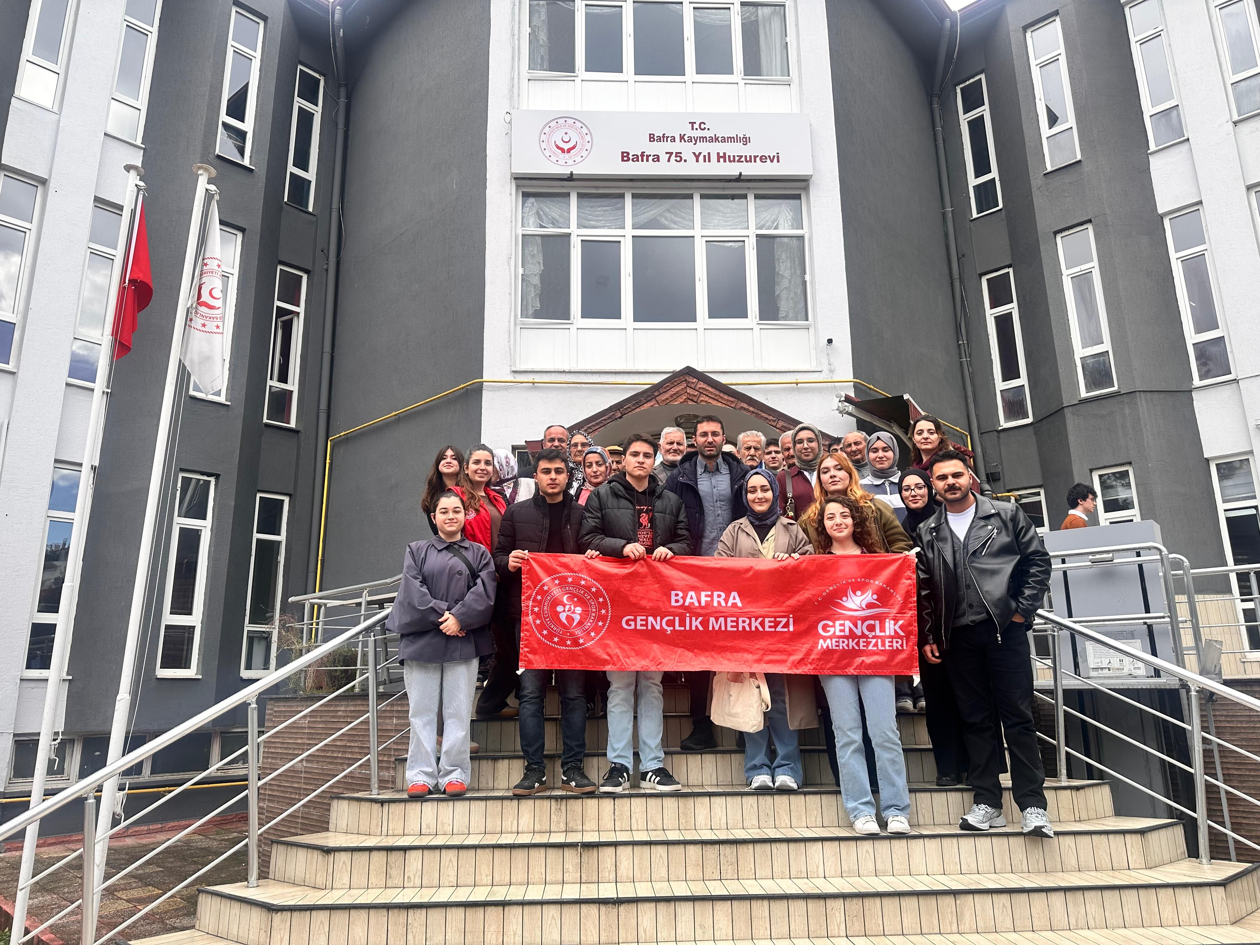Ondokuz Mayıs Üniversitesi (OMÜ) Tıp Fakültesi öğrencileri, Bafra 75. Yıl Huzurevine ziyaret etti. Bafra Gençlik Merkezi tarafından sosyal sorumluluk projesi kapsamında düzenlenen ziyarette tıp fakültesi öğrencileri, huzurevi sakinleriyle sohbet etti.