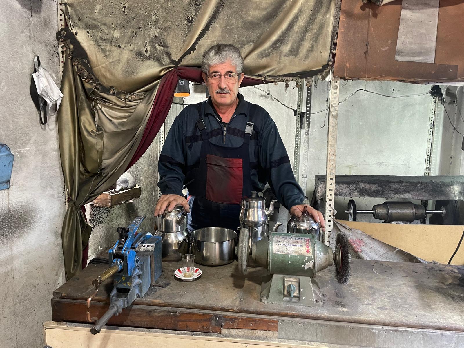 GAZETE ARENA/ Fethi Türkel, çaydanlık tamirini 25 yıldır sürdürüyor ve mesleğin durmaksızın devam ettiğini söylüyor: “Vatandaş yenisinin pahalılığından dolayı eskiyi tamir ettiriyor; bu yüzden işimiz hiç bitmiyor.” Ancak gençlerin bu mesleğe yönelmediğini belirten Türkel, çırak yetiştiremediklerini ve işi bırakmaya çekindiğini ifade ediyor. 60 yaşında olmasına rağmen gücünün yettiği sürece çalışacağını vurguluyor.