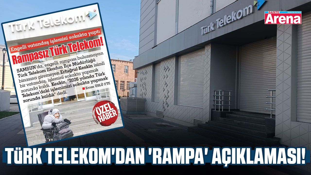 Gazete Arena olarak dün "Rampasız Türk Telekom" başlığıyla yayımladığımız haberde, Türk Telekom İlkadım İlçe Müdürlüğü hizmet binasında engelli rampası bulunmaması nedeniyle işlemini sokakta yapan Ertuğrul Keskin’in yaşadığı mağduriyeti kamuoyuna duyurmuştuk. Keskin, yaşadıklarını "2026 yılında Türk Telekom’daki işlemimizi sokakta yapmak zorunda kaldık" sözleriyle ifade etmişti. Haberimizin ardından Türk Telekom Samsun Bölge Müdürlüğü tarafından konuyla ilgili açıklama yapıldı.