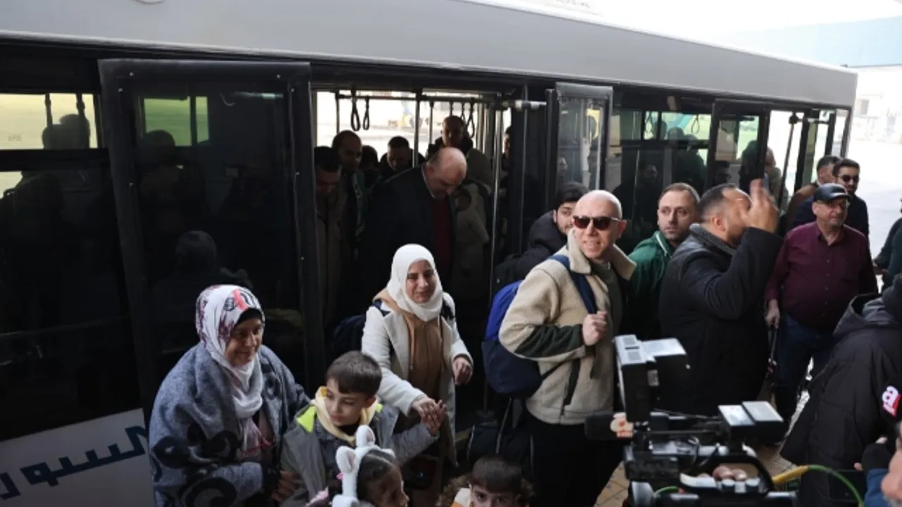 Uçağın inişinin ardından havalimanı binasına otobüslerle getirilen yolcular, otobüslerden "Suriye Esad'ın değil bizim" sloganları atarak indi.