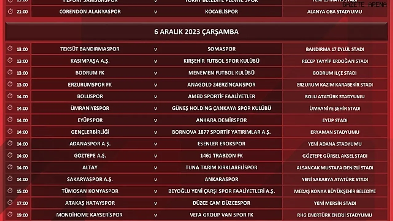 Türkiye Futbol Federasyonundan (TFF) yapılan açıklamaya göre, maç programı şu şekilde: