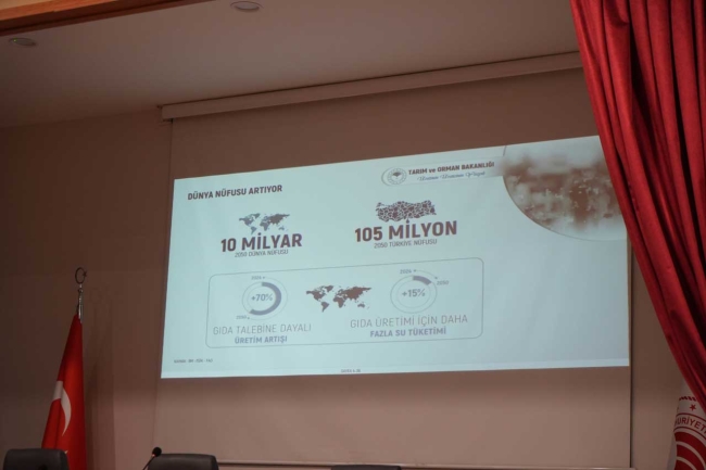 Son 50 yılda dünya nüfusunun iki katına çıkması, kentleşmenin artması ve küresel iklim krizinin tarım sektörünü olumsuz etkilediğine değinen Emiralioğlu, "Küresel iklim değişikliği doğal afetleri beş kat artırdı ve bunun yüzde 50’si tarım sektöründe gerçekleşti. 2050'de dünya nüfusunun 10 milyara, Türkiye nüfusunun ise 105 milyona çıkması bekleniyor. Bu da artan gıda talebiyle birlikte daha fazla su kullanımına ihtiyaç duyacağımız anlamına geliyor" ifadelerini kullandı.