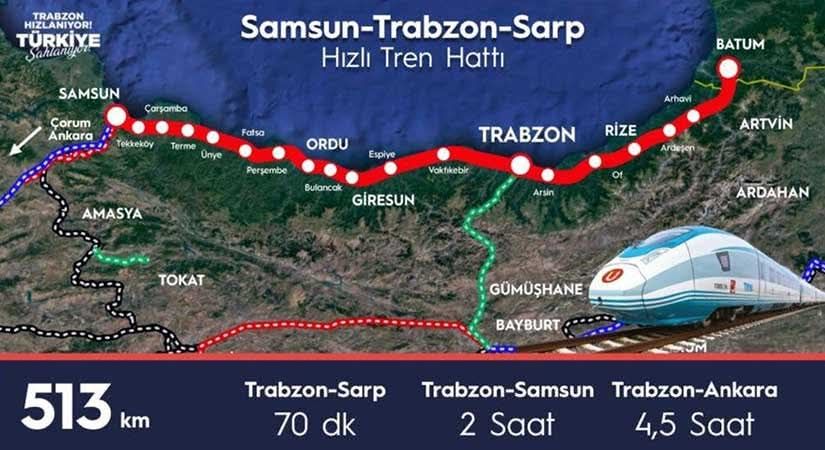 “Samsun-Trabzon-Sarp Demir Yolu Projesi ile Karadeniz kıyısındaki iller arasında ve kent içi ulaşımda önemli bir rahatlama sağlanacak. Proje, Türkiye'yi Kafkasya ve Orta Asya'ya bağlayan stratejik bir demir yolu koridoru oluşturacak. Hem yolcu hem de yük taşımacılığında bölgeye büyük katkı sunacak. Mevcut kara yolu yoğunluğu da önemli ölçüde azalacak.”