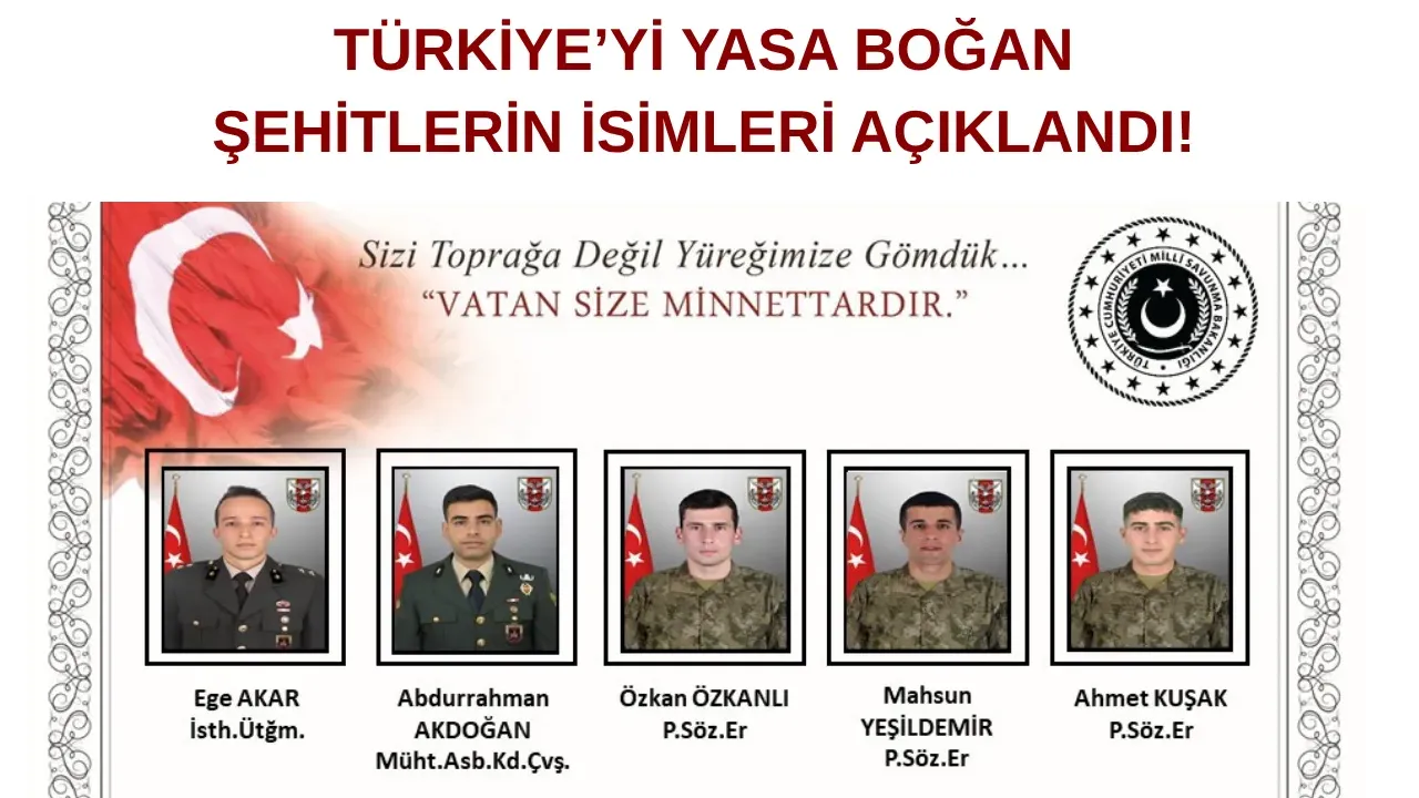 Yürek burkan olayın ardından Milli Savunma Bakanlığı, şehit olan askerlerin kimliklerini kamuoyuyla paylaştı. Şehit düşen kahramanlarımız şöyle: