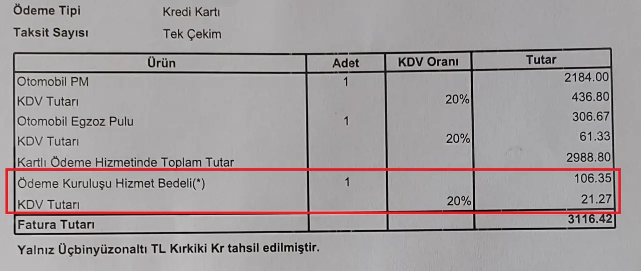 Müşteri hizmetlerinden alınan bilgiye göre, bedelin TÜVTÜRK'e değil, ödeme altyapısını sağlayan bilişim firmasına ait olduğu belirtildi. Yetkililer, "Kredi kartı veya banka kartı ile ödeme yapmak isteyen müşterilerimizden, hizmet sağlayıcı firma tarafından yasal mevzuat uyarınca belirlenen hizmet bedeli tahsil edilmektedir. Bu durum, TÜVTÜRK’ün resmi internet sitesinde randevu alma aşamasında açıkça belirtilmektedir. TÜVTÜRK bu bedelden kazanç sağlamamakta, ödeme doğrudan ilgili firmaya yönlendirilmektedir" bilgisini paylaştı.