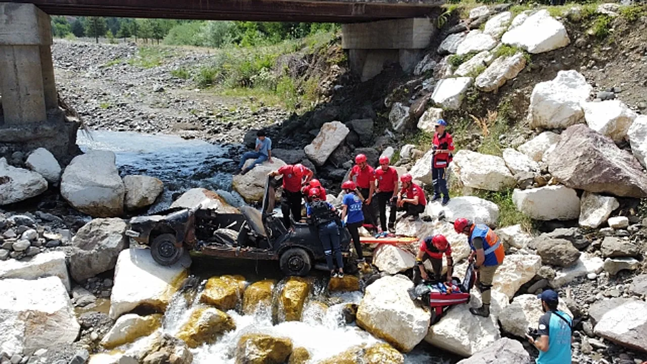 Kastamonu’nun İhsangazi ilçesinde Ulusal Medikal Kurtarma Ekibi tarafından gönüllülerle eğitim tatbikatı gerçekleştirildi. Tatbikatta kaza sonrası çaya uçan araçlardaki yaralılara müdahale edilmesi canlandırıldı.