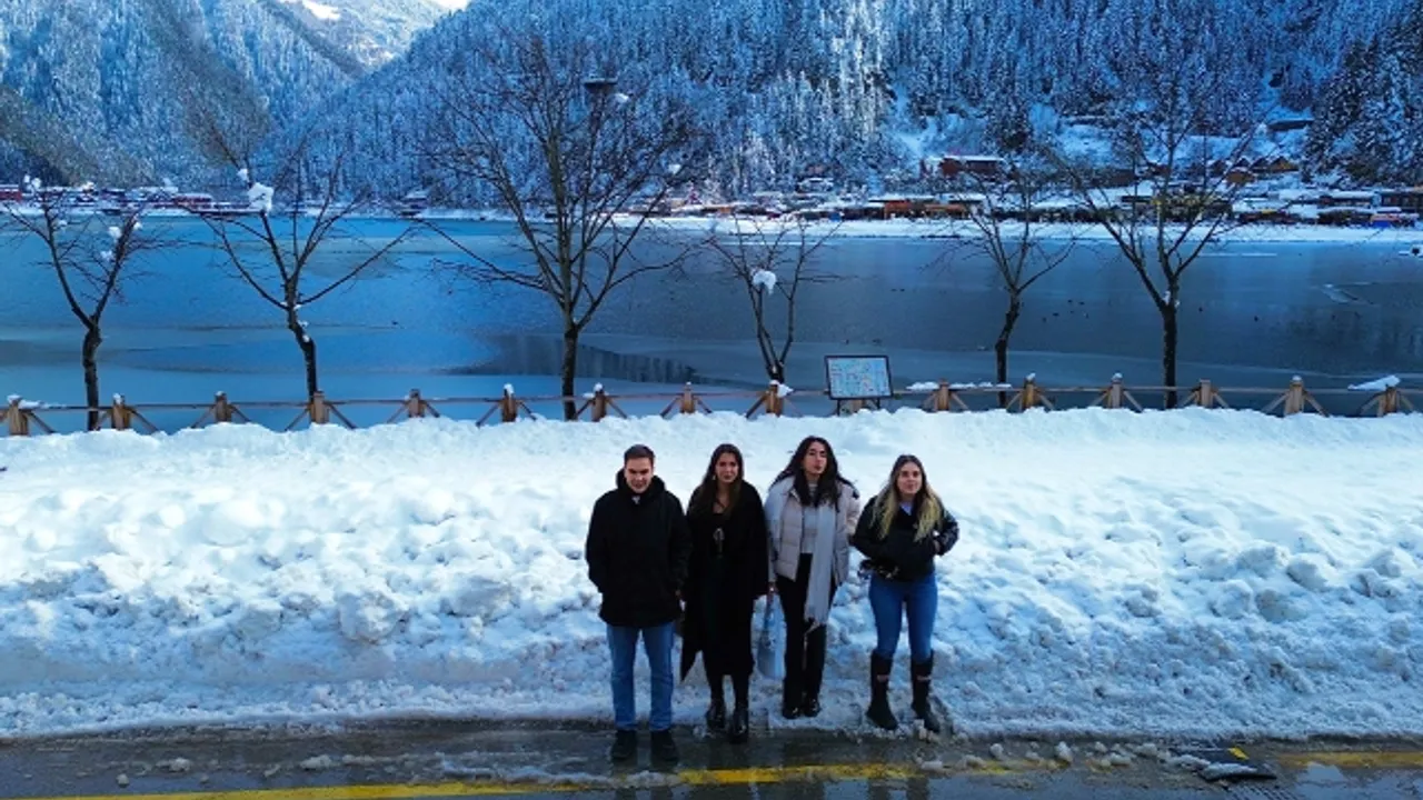 Karadeniz'in önemli bölgelerini ziyaret eden üniversitesi öğrencileri, Trabzon'da Uzungöl'ü gezdi. Hafta sonu etkili olan kar yağışıyla birlikte bölgede kar kalınlığı 60 santimetreye ulaştı. Kar yağışıyla birlikte harika manzaralar da ortaya çıktı. Yağış sonrası kartpostallık görüntüler oluşurken, öğrenciler kar manzarasında fotoğraf çekerek keyifli anlar yaşadı.