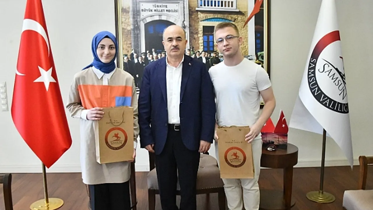 Vali Zülkif Dağlı, Yükseköğretim Kurumları Sınavı'nda (YKS) Türkiye genelinde ilk 100'e giren Samsunlu dört öğrenciden Atakum Proje Anadolu İmam Hatip Lisesi öğrencisi Berranur Albayrak ve Garip Zeycan Yıldırım Fen Lisesi öğrencisi Arda Cengiz ile ailelerini makamında ağırladı.
