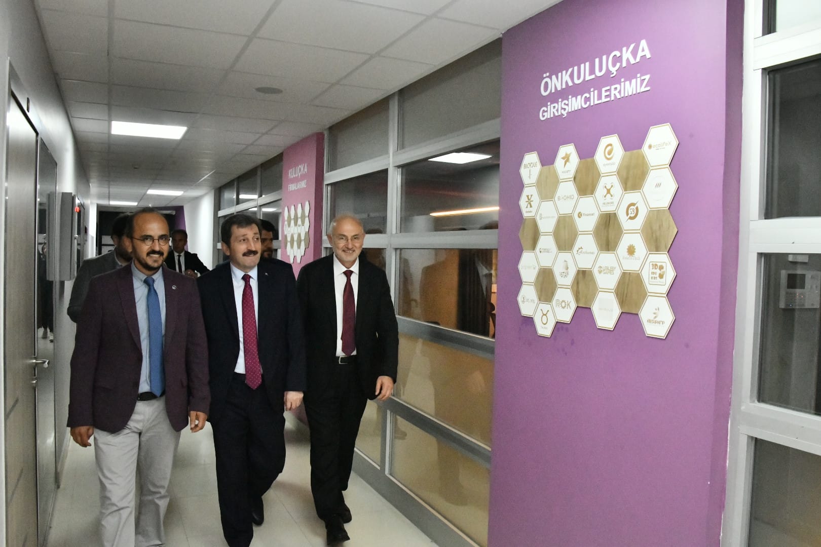Samsun Teknopark Ön Kuluçka ve Araştırma Geliştirme (AR-GE) firmalarınca sürdürülen çalışmaları yerinde inceleyen Vali Tavlı, ziyaret esnasında Ön Kuluçka Girişimcisi OMÜ İşletme Fakültesi 2’inci sınıf öğrencisi Mehmet Yiğit Köroğlu'ndan projesinin ön prototipi hakkında detaylı bilgi alarak kendisine başarılar diledi.