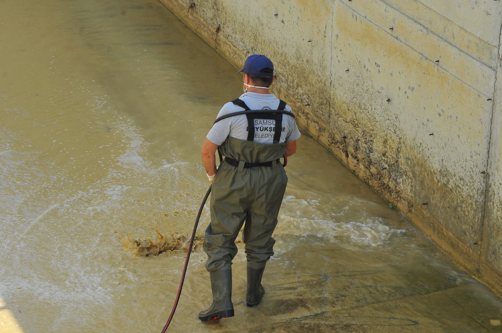 Samsun Büyükşehir Belediyesi Çevre Koruma ve Kontrol Dairesi ekipleri tarafından hava sıcaklıklarının arttığı yaz döneminde sivrisinek, karasinek ve haşereler gibi vektörlerle mücadele çalışmaları hız kesmeden devam ediyor. Ekipler dere kenarları, kanallar ve müstakil evlerin bahçelerinde ilaçlama çalışmalarını gece-gündüz sürdürüyor. Belirlenen bölgelerde yapılan çalışmaların yanı sıra vatandaşlardan gelen talepler doğrultusunda da ilaçlama yapılan bölgeler genişletiliyor. Vektörlerle mücadelede doğaya zarar verilmemesi amacıyla biyolojik ilaçlar kullanılıyor.