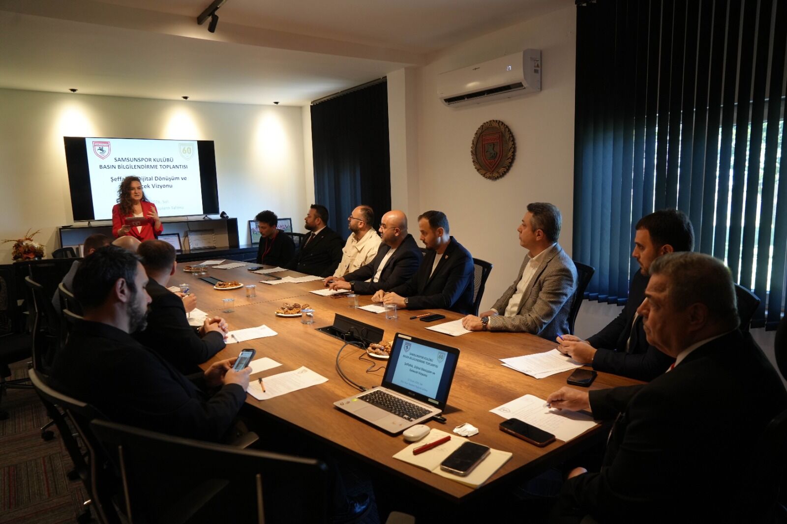 Veysel Bilen başkanlığında toplanan Samsunspor Kulübü yöneticileri, 9 aylık icraatlarını Nuri Asan Tesisleri’nde yapılan toplantıda masaya yatırdı. Toplantıda ilk olarak Kulüp Genel Sekreteri Aslı Moral Ergin, faaliyetler ve projeler hakkında sunum gerçekleştirdi. Sunumun ardından söz alan Yönetim Kurulu Üyesi ve Eğitim Kurumları Sorumlusu İsmail Sedat Uygun, bu süreçte yapılan çalışmaları görselleriyle birlikte aktardı. Veysel Bilen ise Samsunspor Kulübü icraat raporu sunumunun ardından basın mensuplarına açıklamalarda bulundu.